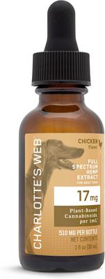 Support your pet's daily health with Charlotte's Web Full Spectrum Hemp Extract Chicken Flavored Liquid Calming Supplement for Dogs. Crafted with premium hemp extract for a natural wellness boost, this versatile oil promotes everyday balance and well-being to help ensure your furry friend thrives. The delicious chicken flavor is ideal for pets who savor nature's meaty tastes, making it easy to give and a treat for your best buddy, too. This supplement is a great way to integrate plant-powered benefits into your pet's routine for enhanced vitality and happiness.
