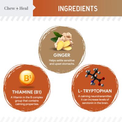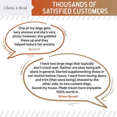 - These tasty chews help reduce anxiety and curb behaviors like excessive barking or hyperactivity during stressful situations.