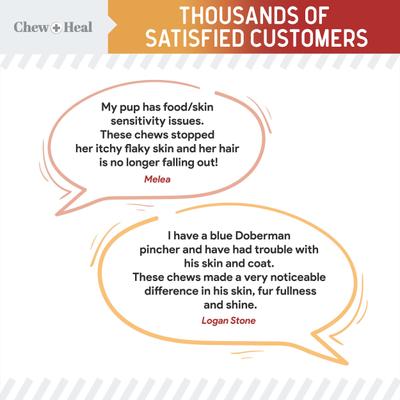 Treat your pup to a luxurious coat and healthy skin with Chew + Heal Omega Skin + Coat Smoked Bacon & Peanut Butter Flavored Soft Chew Bundle Supplement for Dogs. Made with omega fatty acids from salmon, fish, and flaxseed oils, this supplement promotes a shiny and smooth coat for your furry friend. Say goodbye to dandruff and itchy skin as this formula moisturizes and nourishes your pup’s skin. Omega-3 and omega-6 bolster immunity and cognitive function, while calcium, phosphorus, vitamin E, and zinc promote cell growth and joint health. Plus, it contains brewer’s yeast, B vitamins, biotin, EPA, and DHA to help reduce shedding, dirty appearance, and bald spots.