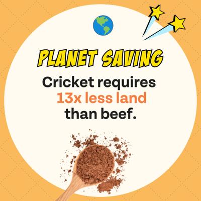 - Made with humanely harvested cricket protein, which uses significantly less water and land than beef, making these treats an eco-friendly option.