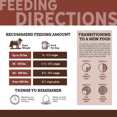 Perros mayores: las necesidades alimentarias varían según la raza, el entorno, la temperatura y los factores de estrés. Los perros muy activos y atléticos requieren una cantidad adicional de alimento según su nivel de actividad. La ingesta de alimentos debe ajustarse para mantener un peso corporal óptimo.