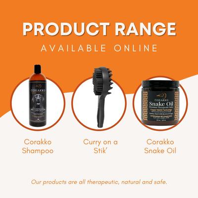 Say goodbye to pesky skin issues with Curry on a Stik Corakko Canine Pet Shampoo. This powerful formula combines the strength of nano-copper technology with an ancestral Chilean herb from the quillac seponaira plant and coptis huang lian. This combination effectively prevents and treats bacterial and fungal growth on and under your furry friend’s skin. With a unique blend of skin conditioning agents, cleansing agents, and moisturizers, this shampoo is both preventative and therapeutic for common skin diseases. It also has anti-inflammatory, anti-oxidative, and anti-microbial properties to combat bacteria, fungi, and viruses. Plus, it helps maintain a healthy hair coat and manages skin ailments, protecting against dryness, cracking, itching, and dandruff. And after each use, your furbaby’s coat will be left moisturized, nourished, and with a beautiful shine.