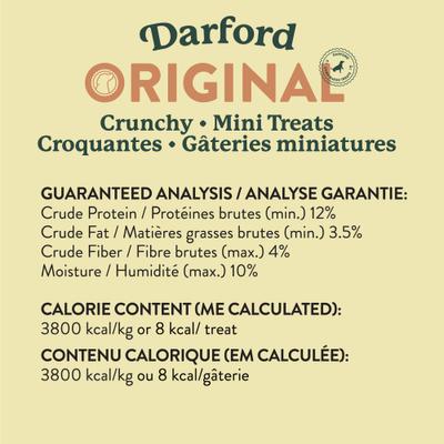Darford, experts in baking healthy dog treats for over 35 years, proudly introduces Darford Original No-Corn-Wheat-Soy Chicken Bone Adult Small Crunchy Dog Treats. Made with all natural, whole ingredients including grains, fruit, and real chicken, these treats are meticulously baked by our master bakers for a deliciously crunchy texture. Say goodbye to artificial flavors, coloring, and preservatives, and hello to a wholesome and tasty treat for your furry friend. These mini heart-shaped treats are perfect for small breed dogs and come in a conveniently sized resealable bags. Give your pet the best with Darford Original Crunchy Mini treats!