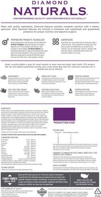 Give your petite pooch the priceless gift of superior nutrition with Diamond Naturals Small Breed Adult Chicken & Rice Formula Dry Dog Food. Formulated from the highest quality ingredients, this food is made with uncompromising quality and performance using carefully determined levels of protein, fat and other vital nutrients to support your little guy’s paw-ptimal health and active lifestyle. Highly nutritious super foods like kale, blueberries, chia seeds and pumpkin–along with real fruits and vegetables including carrots, spinach and papaya–provide essential natural antioxidants, vitamins and minerals for a complete and balanced holistic diet for pint-sized pups.