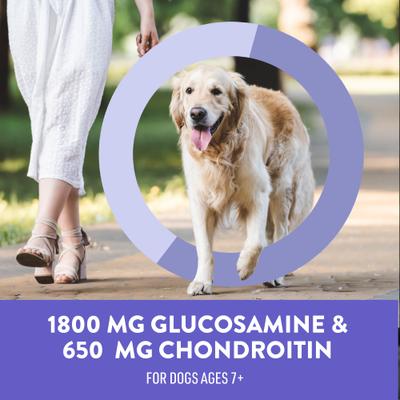 - Especialmente formulado con una mezcla única de ingredientes que mejoran la movilidad, como glucosamina, condroitina y vitamina E, para apoyar la salud de la cadera y las articulaciones de los perros mayores.