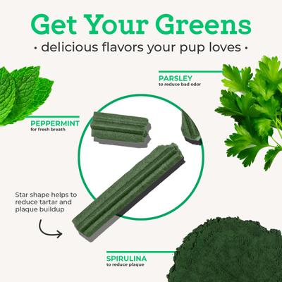 - The key ingredients in these treats include spirulina, chlorophyll, parsley, peppermint, and fructo-oligosaccharide.