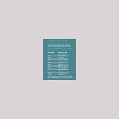 Always feed to maintain ideal body condition. Adjust individual amount as needed considering activity level, environment and age. It’s best to feed Kinesis Grain Free twice daily, so give half the following amounts per feeding. Always have fresh water available. Not for human consumption.