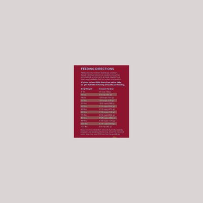 Always feed to maintain ideal body condition. Adjust individual amount as needed considering activity level, environment and age. It’s best to feed RPM Grain Free twice daily, so give half the following amounts per feeding. Always have fresh water available. Not for human consumption.