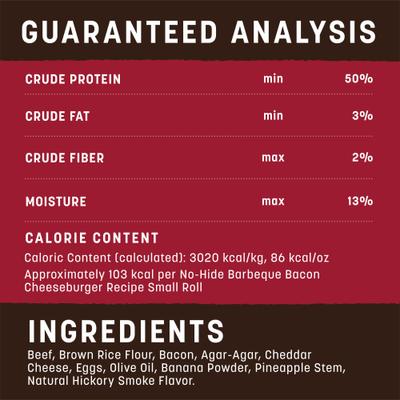 - This recipe features wholesome and highly digestible ingredients, including beef, bacon, cheddar, and natural hickory smoke flavor.