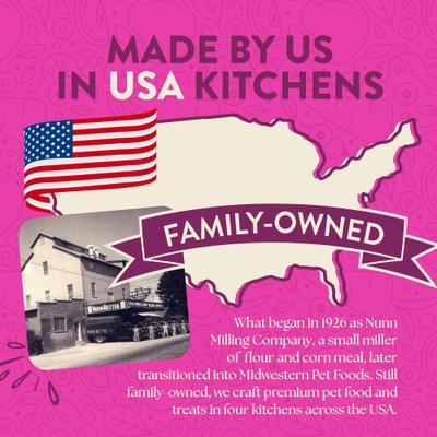 - La harina de cordero, hecha con carne roja, proporciona una fuente de proteína de alta calidad. La fórmula sin cereales, combinada con verduras y frutas cuidadosamente seleccionadas, como guisantes, manzanas, arándanos, zanahorias, espinacas y arándanos rojos, ayuda a satisfacer las necesidades nutricionales diarias de su perro. Los minerales quelados se absorben fácilmente en los tejidos corporales de su perro para una nutrición óptima.