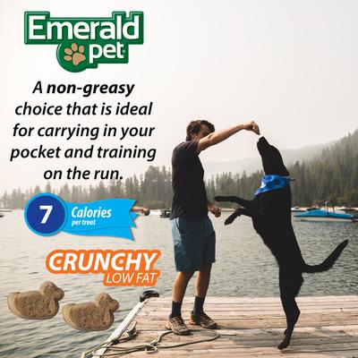 Emerald Pet Little Duckies Treats are crafted with limited ingredient formulas using Indiana farm-raised duck meat as the primary source of protein, making them ideal for dogs with sensitivities to chicken and other meat proteins. Dogs and trainers alike love them for their easy acceptance by dogs that traditionally only eat straight meat treats as a reward. Absent of any greasy residue with delicious ingredients, Little Duckies are ideal for carrying in your pocket and training on the run. Emerald Pet Little Duckies with Duck & Sweet Potato are rich in vitamin C for extra health-promoting benefits.