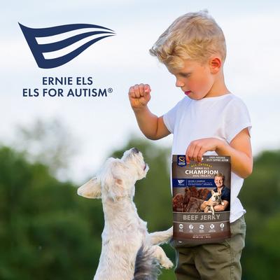 Discerning doggos and pet parents can agree on Ernie Els Pet Products Beef Jerky Dog Treats. These single-ingredient jerky treats are crafted with real, USA-raised beef. They're high in protein, Grain-Free, and contain no artificial colors or flavors. Plus, they're oven baked to help maximize that irresistible beefy taste! Ernie Els Pet Products donates 10% of its profits to the Els for Autism Foundation to help support people with autism.