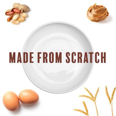 Harina integral, salvado de trigo, mantequilla de cacahuete, aceite de canola, copos de avena, cacahuetes tostados, huevos, canela, tocoferoles mixtos (conservante natural).
