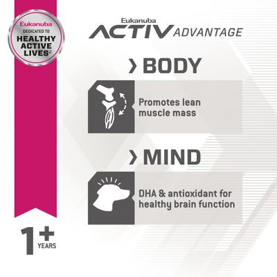 - Guaranteed levels of DHA and vitamin E help support your active dog’s healthy brain function.