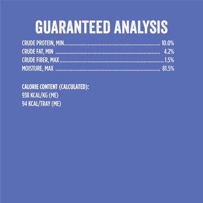 Deboned Chicken, Water Sufficient For Processing, Chicken Liver, Pollock, Cod, Calcium Carbonate, Powdered Cellulose, Locust Bean Gum, Carrageenan, Sodium Tripolyphosphate, Guar Gum, Canola Oil, Salt, Ascorbic Acid, Magnesium Carbonate, Taurine, Vitamin E Supplement, Zinc Sulfate, Xanthan Gum, Thiamine Hydrochloride, Copper Amino Acid Chelate, Pyridoxine Hydrochloride, Manganese Sulfate, Folic Acid, Vitamin D3 Supplement, Calcium Iodate, Biotin.
