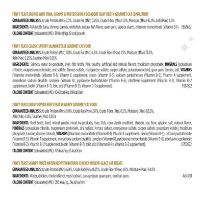 Fancy Feast Broths With Tuna, Shrimp & Whitefish In A Decadent Silky Broth Gourmet Cat Complement: 775 kcal/kg, 65 kcal/can