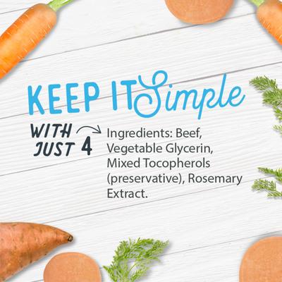 Carne de res, glicerina vegetal, tocoferoles mixtos (conservante), extracto de romero.