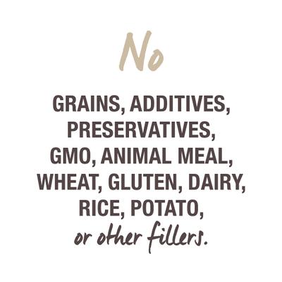 - No GMO ingredients, fillers, legumes, plant proteins, starches, preservatives, gum or binders.
