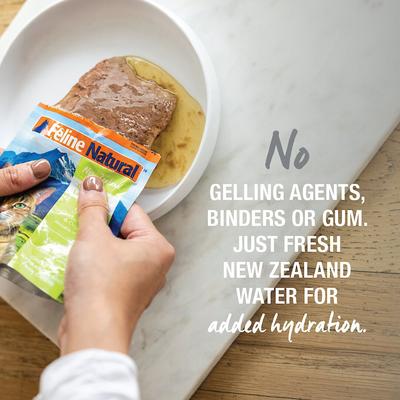 - Grain-free, lamb and salmon flavored cat food pouches that are made in New Zealand.