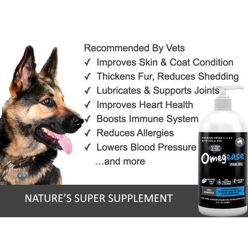 Suplemento de aceite de pescado rico en omega Omegease para perros y gatos, botella de 8 onzas líquidas