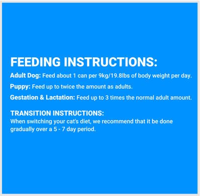 Adult DogFeed about 1 can per 9kg/19.8lbs of body weight per day.
