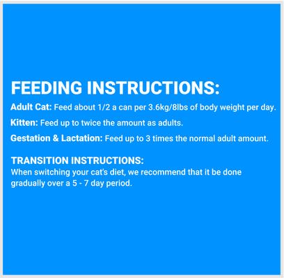 Adult CatFeed about 1/2 a can per 3.6kg/8lbs of body weight per day.