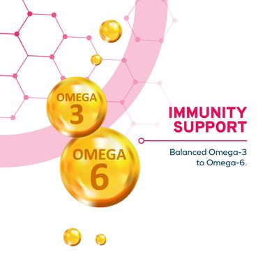 - Provides immunity support with a balanced ratio of omega-3 to omega-6 fatty acids.