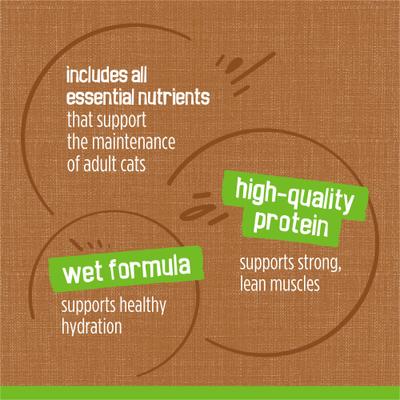 - Canned cat food with 100 percent complete and balanced nutrition for adult cats contains essential vitamins and minerals and no artificial colors or preservatives.