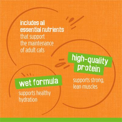 - Finely chopped into a classic, smooth pate, this wet cat food for adult cats easily adds extra moisture to your cat’s diet.