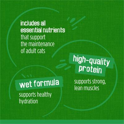 - This variety pack features 3 different meal options crafted with real poultry or seafood and accents of garden greens.