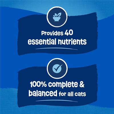 - Textura y sabor deliciosos con ácidos grasos esenciales para la salud de la piel y el pelaje, vitamina A y taurina para el apoyo de la visión, y antioxidantes para el apoyo inmunológico de los gatos.