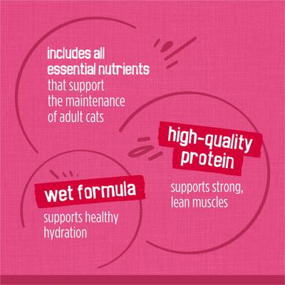 - Each serving provides 100% complete and balanced nutrition for adult kitties, with shredded chunks and gravy for added moisture.