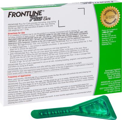 - Cuando se usa mensualmente, FRONTLINE Plus rompe completamente el ciclo de vida de las pulgas y controla las infestaciones de garrapatas y piojos masticadores. No vuelva a aplicar FRONTLINE Plus durante 30 días.