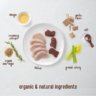 Chicken, Organic Cane Sugar, Salt, Vinegar, Dried Cultured Skim Milk, Natural Smoke Flavor, Rosemary Extract.