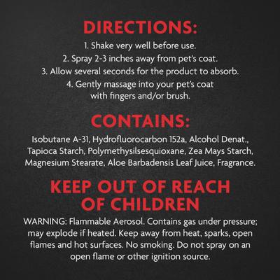 FURminator Dry Shampoo is for topical use on dogs over 6 weeks old. Avoid contact with eyes. Use with other FURminator grooming products as part of a complete regimen for professional-quality, at-home grooming results: Brush daily to detangle and smooth fur; deShed weekly to reduce shed hair; and bathe monthly to promote healthy skin and coat while reducing shedding.
