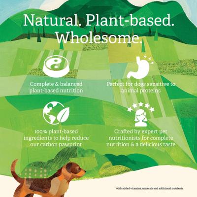 - Crafted with certified organic, plant-based ingredients, this recipe provides natural nutrition to help adult canine companions thrive on a meat-free diet. It’s paw-fect for dogs who are sensitive to animal proteins.