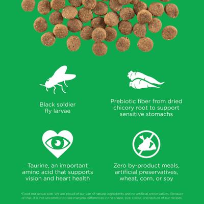 - Insect-based protein is great for dogs with sensitive stomachs.