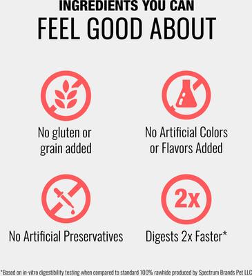 Select a treat slightly larger than your pet's mouth. This product is intended to be chewed. Always supervise your pet during chewing activity, especially if they are known to swallow their treats whole. Provide plenty of fresh drinking water and discard any leftover chunks or fragments. This product is intended for intermittent or supplemental feeding only. Treats should not exceed 10% of your dog's daily caloric intake. Visit your veterinarian regularly and discuss your pup's daily caloric requirements based on weight, size, breed, age and activity level. If you have questions about whether this product is right for your dog, consult with your veterinarian.
