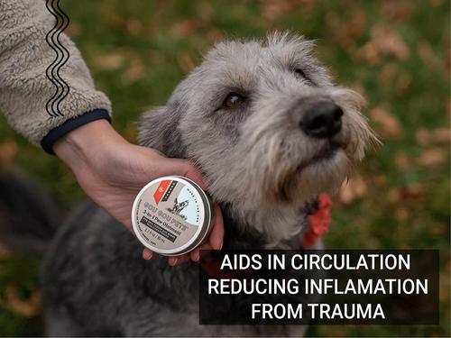 - Eases swelling, discomfort, blistering and discoloration, moisturizes and conditions cracked skin and cracked paws.