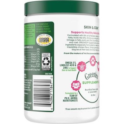 Suplemento masticable suave de aceite de pescado con sabor a pollo para piel y pelaje de perros, 80 unidades, envase de 14.7 oz