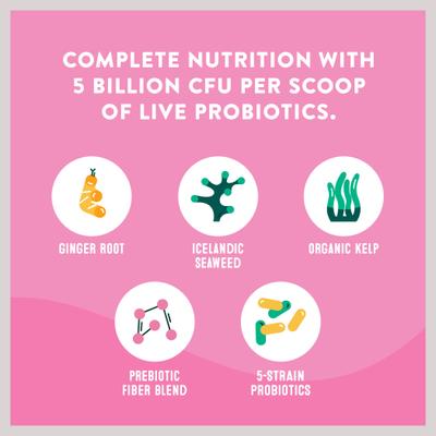 - Formulated with probiotics, prebiotics, ginger root, Icelandic seaweed, and kelp.