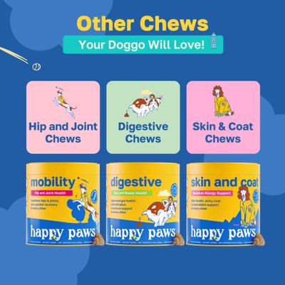 Keep your furry friend’s bladder health in check with Happy Paws Bladder Health Soft Chews Supplement for Dogs. These carefully selected urinary tract health chews are designed to complement your furbaby’s daily routine. Suitable for pups of all ages and sizes, these soft chews provide essential nutrients in a tasty, easy-to-serve format, making it a breeze to add extra support to your tail wagger’s wellness plan. Plus, these chews also help boost your four-legged family member’s kidney health and immune support.