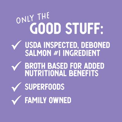 - Made with premium salmon, a high-quality source of protein and Omega 3’s.