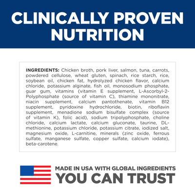 El alimento húmedo enlatado para gatos Hill's Science Diet Adult Indoor Salmon & Vegetable Medley Minced está elaborado con ingredientes de fácil digestión que tu mascota disfrutará. Tu gatito se deleitará con el delicioso sabor del salmón auténtico, y esa proteína de calidad le ayuda a mantener una masa muscular magra. Los antioxidantes y las vitaminas C y E también refuerzan el sistema inmunitario de tu gato. Este alimento enlatado es la opción perfecta para tu gato adulto amante del salmón.