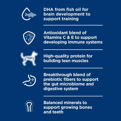 - Made with a paw-somely optimal blend of prebiotic fibers to help support your growing pup’s healthy digestion.