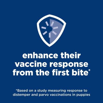 - Your puppy’s growing bones and teeth are supported by balanced minerals.