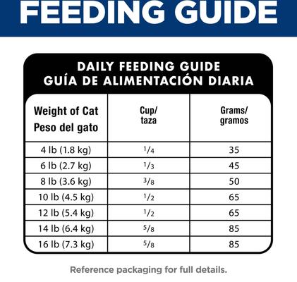 Adjust feeding amounts as necessary to maintain optimal weight. If you are unsure, ask your veterinarian.New to this food? Mix increasing amounts of your pet's new food with decreasing amounts of the old food over a 7-day period.Keep fresh water available at all times!Your pets nutritional needs may change as they age. Ask your vet at every checkup.To prevent suffocation, keep the packaging out of the reach of pets and children.