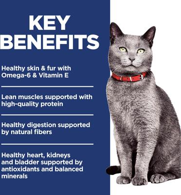 - Your purring pal’s lean muscles are supported with the high-quality protein in this food.