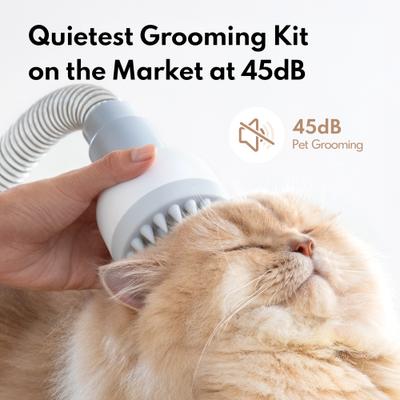 Introducing HomeRunPet’s 2-in-1 Dog, Cat & Small Pet Grooming Kit & Vacuum. Engineered with precision and innovation, this grooming vacuum boasts an array of features that prioritize efficiency, comfort, and convenience. With triple-layered sound insulation, noise-reducing air duct, and double electric motor shields, the vacuum operates at 45 decibels, ensuring a serene grooming experience for both pet parents and their furry friends. The kit includes a needle comb, thinning comb, silicone comb, lint brush, long nozzle, and clippers, allowing for effortless grooming while simultaneously collecting clipped and excess hair with the powerful vacuum feature. The 1.85-liter dustbin accommodates ample hair and dust. The dustbin, filter, and filter foam are all removable for easy cleaning. Customize your grooming experience with 3 suction settings to suit your pet’s needs and preferences. Enjoy enhanced flexibility and maneuverability with the 6-foot hose that offers an extended working range while further reducing noise. Elevate your grooming experience with HomeRunPet’s Pet Grooming Vacuum.