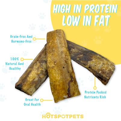 - Snack sin cuero crudo, rico en proteínas, rico en vitaminas y nutrientes: un complemento perfecto para las comidas habituales de tu perro.